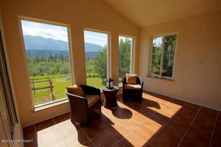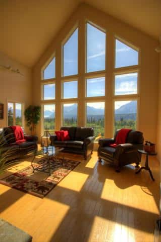 Check out this view. The wide expanse of the Chugach Range is out the front windows including the magnificent Matanuska Glacier. The Talkeetna Range is out the back windows. There aren’t many places in the world with a view like this.