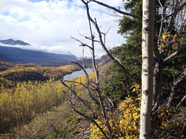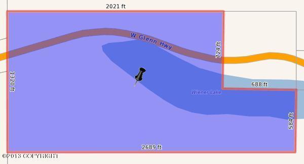 70 Acres of land on the Glenn about 37 Miles from Palmer. 1000’s of feet of lake frontage. Paved road to property. Well and septic on property. View forever. Great fishing out your front door!