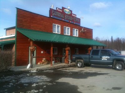 going.This is a neat little store, Owners Jeff and Julie Wendt are well set up to service visitors as Point Mackenzie grows. They have groceries, gas, cabin rentals, RV parking, showers, espresso, fenced storage, and a cafe. I was wishing for more time to look around at the attractive log cabins but time was a’wastin so I headed on out, with a reminder to myself to stay for a burger or something next time.